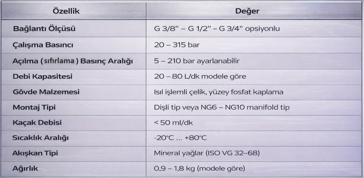 Basınç sıfırlama valfleri, hidrolik sistemlerde devrelerin belirli bir sırayla çalışmasını sağlamak için kullanılan kontrol elemanlarıdır. Temel görevleri, ayarlanan basınca ulaşılıncaya kadar akışı ikinci devreye göndermemek; basınç eşiği aşıldığında ise akışı otomatik olarak yönlendirmektir. Bu sayede sistemde güvenli, kontrollü ve senkronize bir çalışma düzeni elde edilir.Dayanıklı monoblok gövde yapıları ve hassas ayar mekanizmaları sayesinde titreşim, basınç darbesi ve değişken yük koşullarında stabil performans sunarlar. Ayar vidası ile hızlı basınç ayarı yapılabilir, bakım ihtiyacı düşüktür ve uzun çalışma ömrü sağlarlar.Basınç sıralama valfleri; pres makineleri, plastik enjeksiyon hatları, tarım makineleri, mobil hidrolik uygulamalar ve endüstriyel otomasyon sistemlerinde yaygın olarak kullanılır. Birden fazla fonksiyonun doğru sırayla devreye girmesi gereken tüm hidrolik yapılarda güvenli akış kontrolü sağlar.
