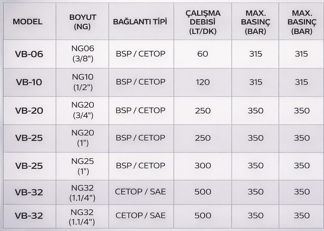 Valf blokları, hidrolik sistemlerde birden fazla kontrol valfinin tek bir gövde üzerinde toplanmasını sağlayan kompakt ve fonksiyonel hidrolik elemanlardır. Yön kontrol valfleri, basınç valfleri, debi kontrol elemanları ve diğer hidrolik bileşenler bu blok üzerinde düzenli bir şekilde birleştirilerek sistemin hem performansı hem de güvenliği artırılır.Bu bloklar, hidrolik devreyi sadeleştirir, hortum ve bağlantı ihtiyacını azaltır, olası kaçak risklerini düşürür ve bakım kolaylığı sunar. Aynı zamanda daha düzenli bir sistem yapısı sağladığı için arıza tespiti ve servis süreçleri de hızlanır. Endüstriyel makineler, pres hatları, plastik enjeksiyon sistemleri, güç üniteleri ve özel hidrolik otomasyon uygulamalarında sıkça kullanılır.Valf blokları, kompakt tasarımları, yüksek dayanımları ve birden fazla fonksiyonu tek noktada toplama özellikleri sayesinde modern hidrolik kontrol sistemlerinin vazgeçilmez bir parçasıdır.